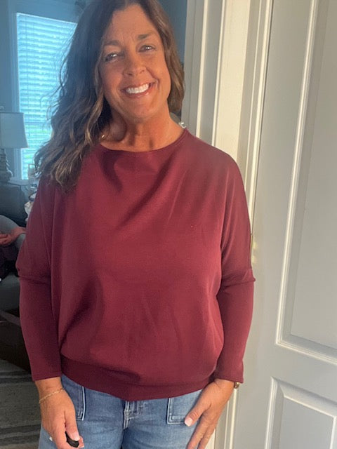 Burgundy Scuba Fabric Dolman Sleeve Top