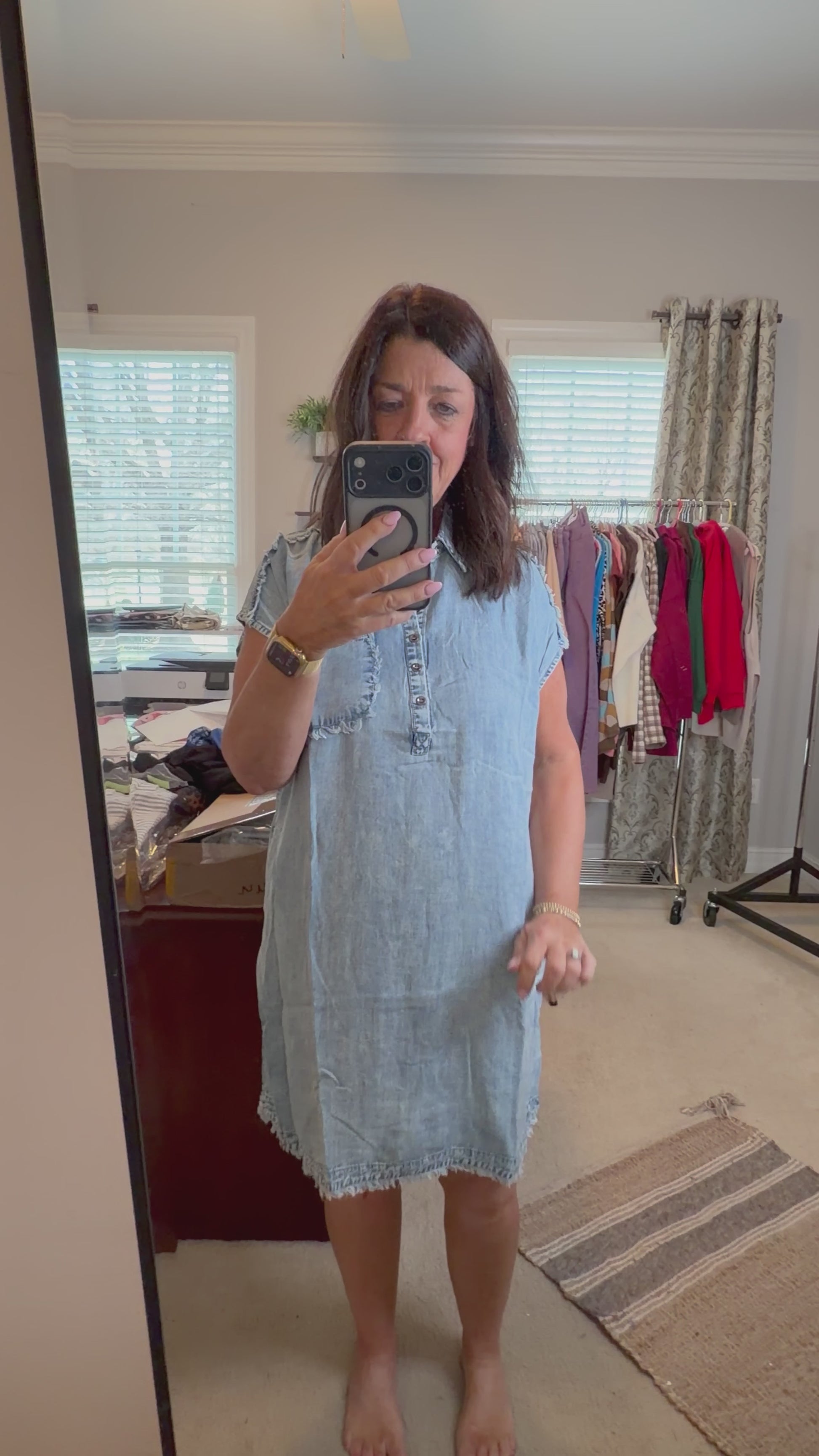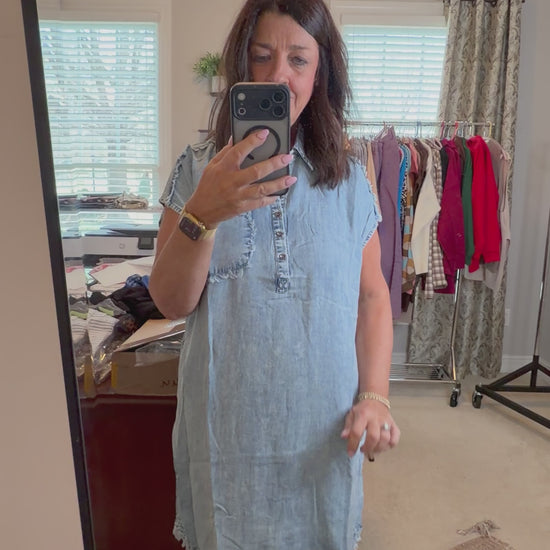 Frayed Short Sleeve Midi Shirt Dress