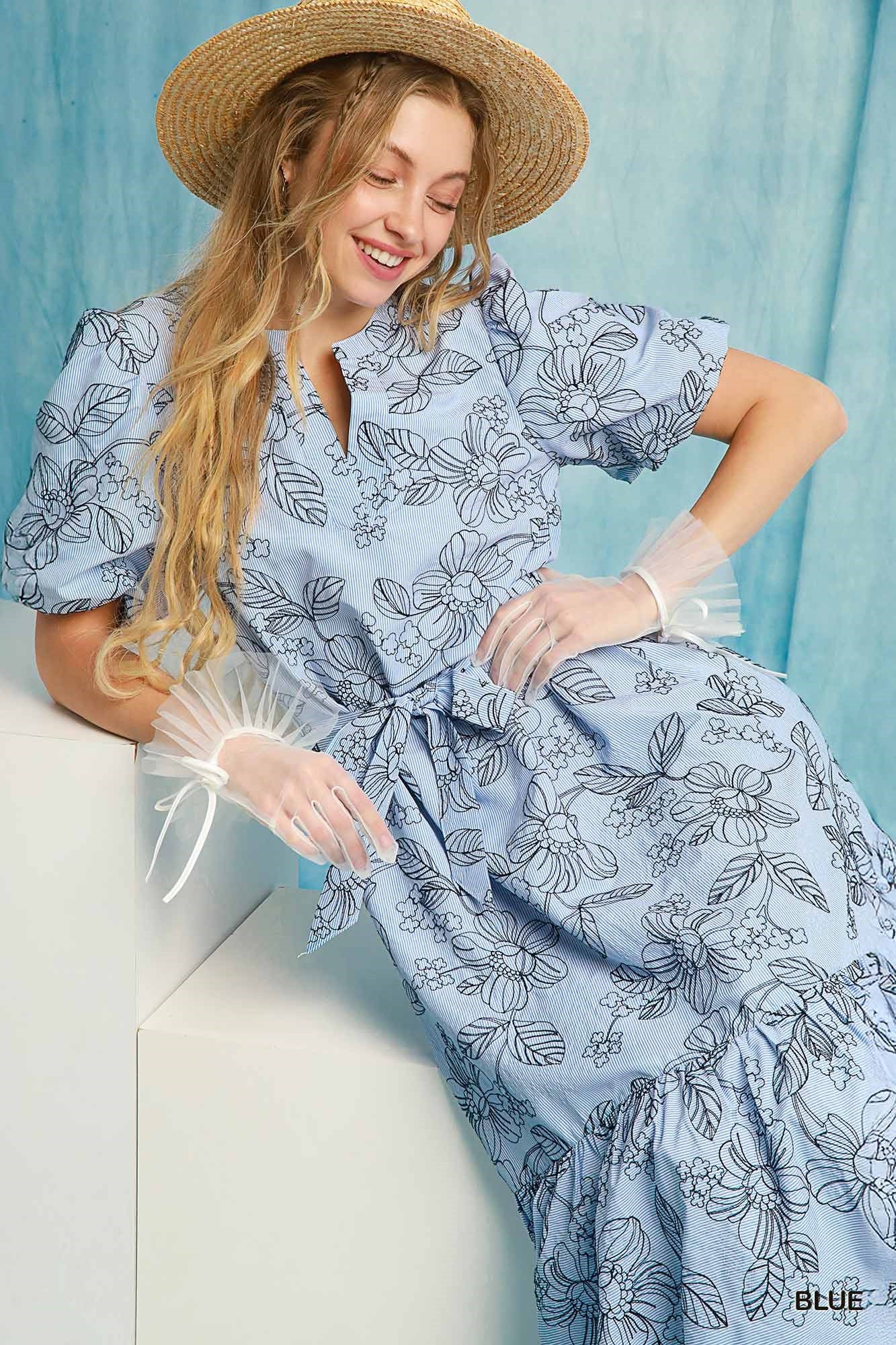 Navy & Blue Embroidered Midi Dress