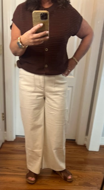Stitch Detail Front Pocket Pants-Ecru